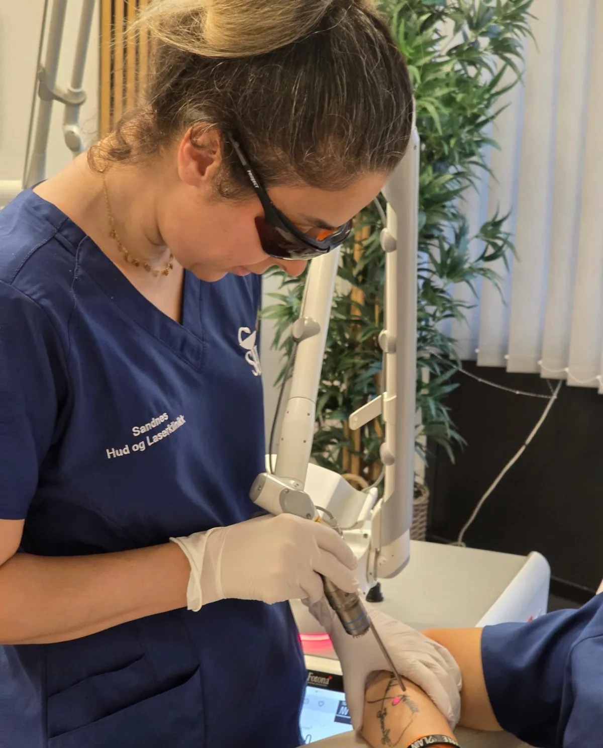 Behandlingen gir en følelse av prikking eller varme på huden, og intensiteten kan variere avhengig av tatoveringens størrelse og plassering. Vi tilpasser alltid behandlingen for å redusere ubehag og sørger for at du føler deg trygg under hele prosessen.